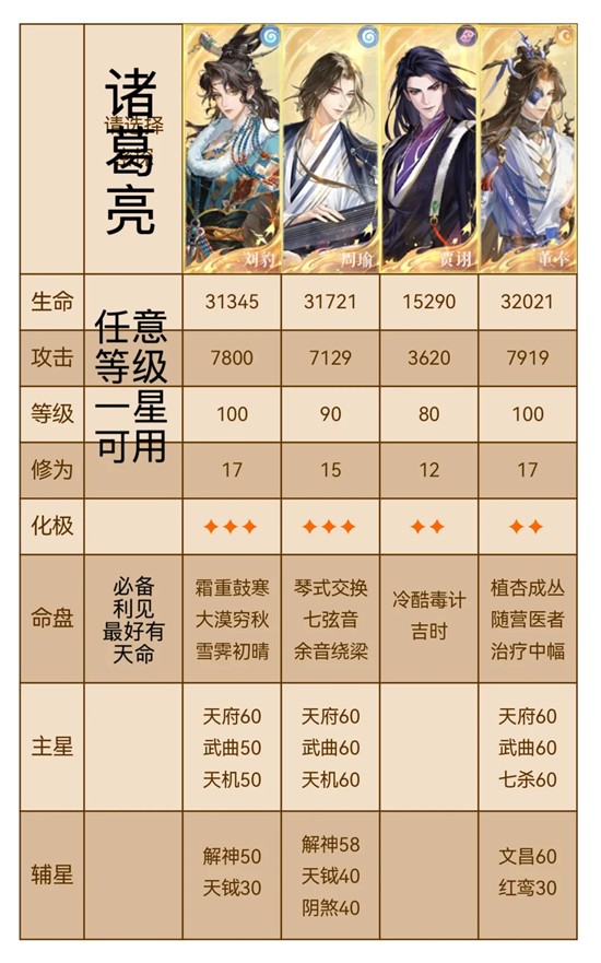 诸葛亮 必备利见,最好用天命,一星可用(一星二星赌点区别请看上文)