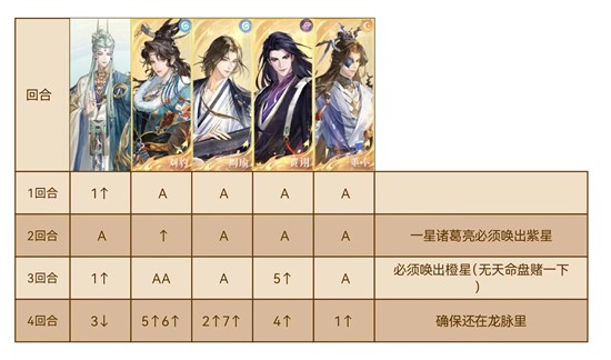 这个诸葛亮还是太强了,仔细研究了一下,一星是可以的,只要保持第4回合还在龙脉里即可,一星诸葛亮的话要保证第三回合唤出橙星,有天命盘保证第二回合唤出紫星即可